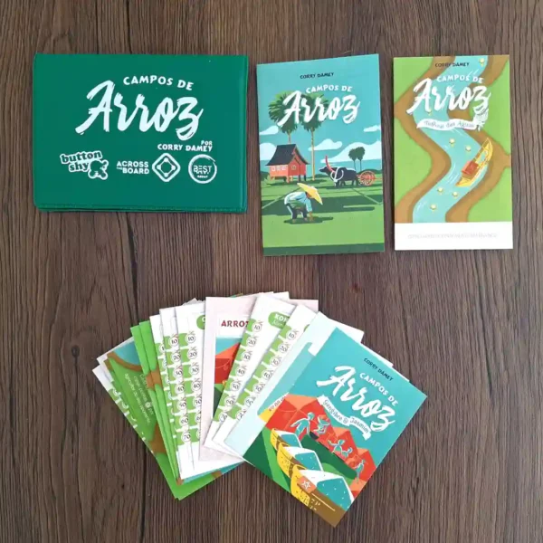 Campos de Arroz é um jogo de cartas em que os jogadores cultivam e expandem seus arrozais ao longo de duas temporadas, Estação Chuvosa e Estação Seca. Selecionando e posicionando cartas de forma estratégica, fecham campos para pontuar, aproveitam casas, agricultores e búfalos para aumentar os pontos e cumprem objetivos do seu Ancestral. Vence quem, ao final, tiver o arrozal mais fértil e bem planejado.