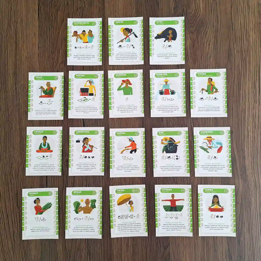 Durante a Estação Chuvosa, cada jogador recebe 7 cartas de arroz. Em cada turno, todos escolhem simultaneamente 2 cartas: