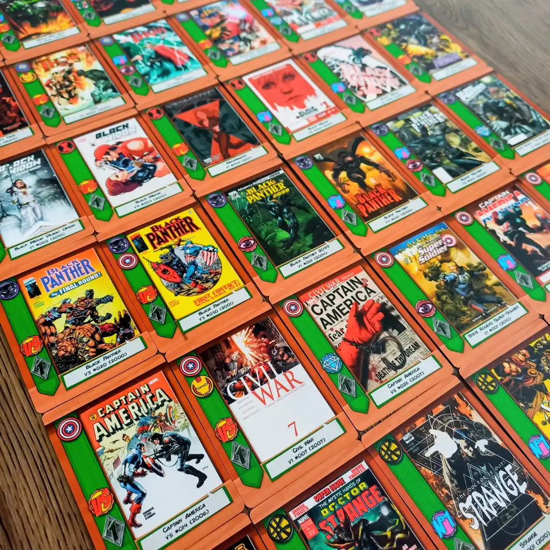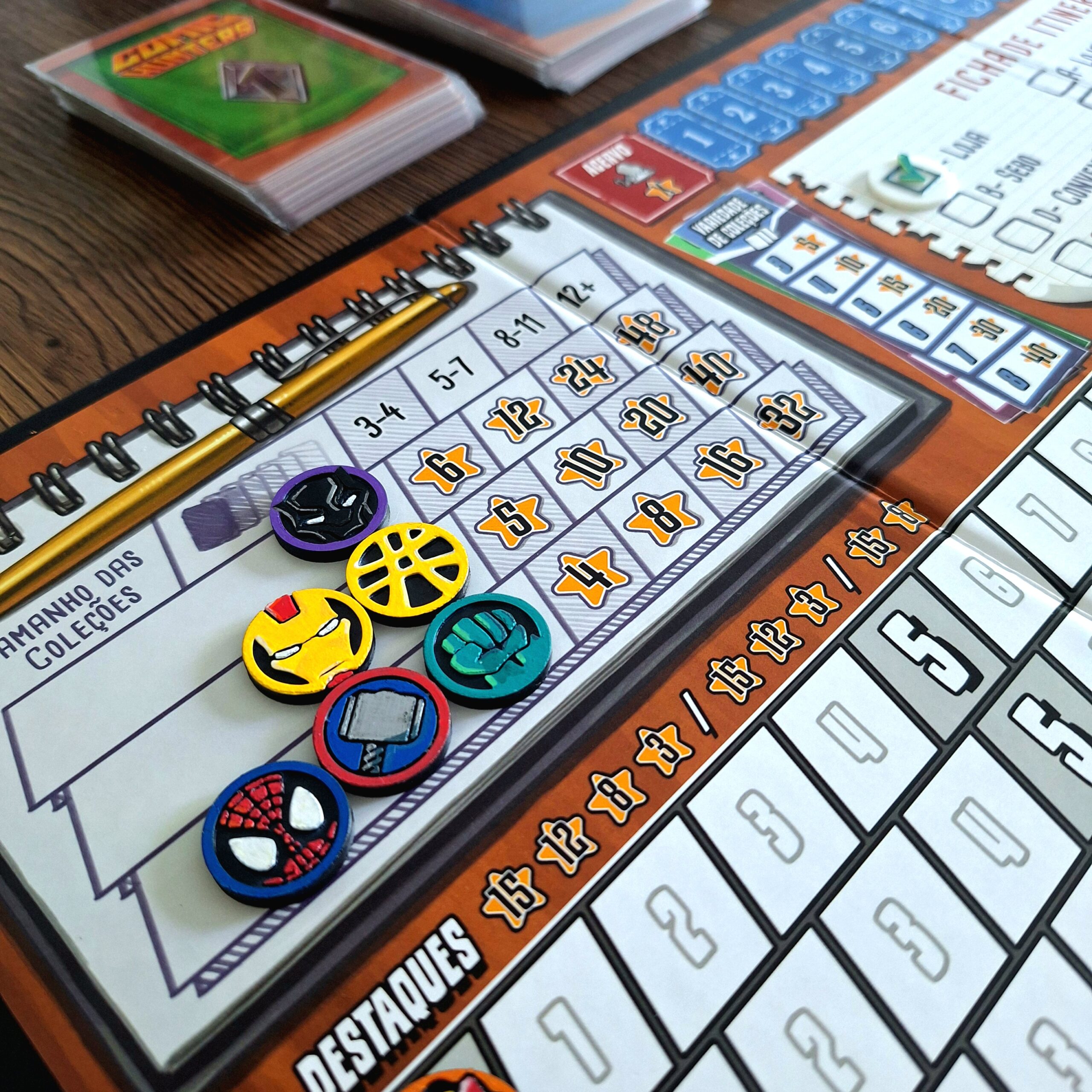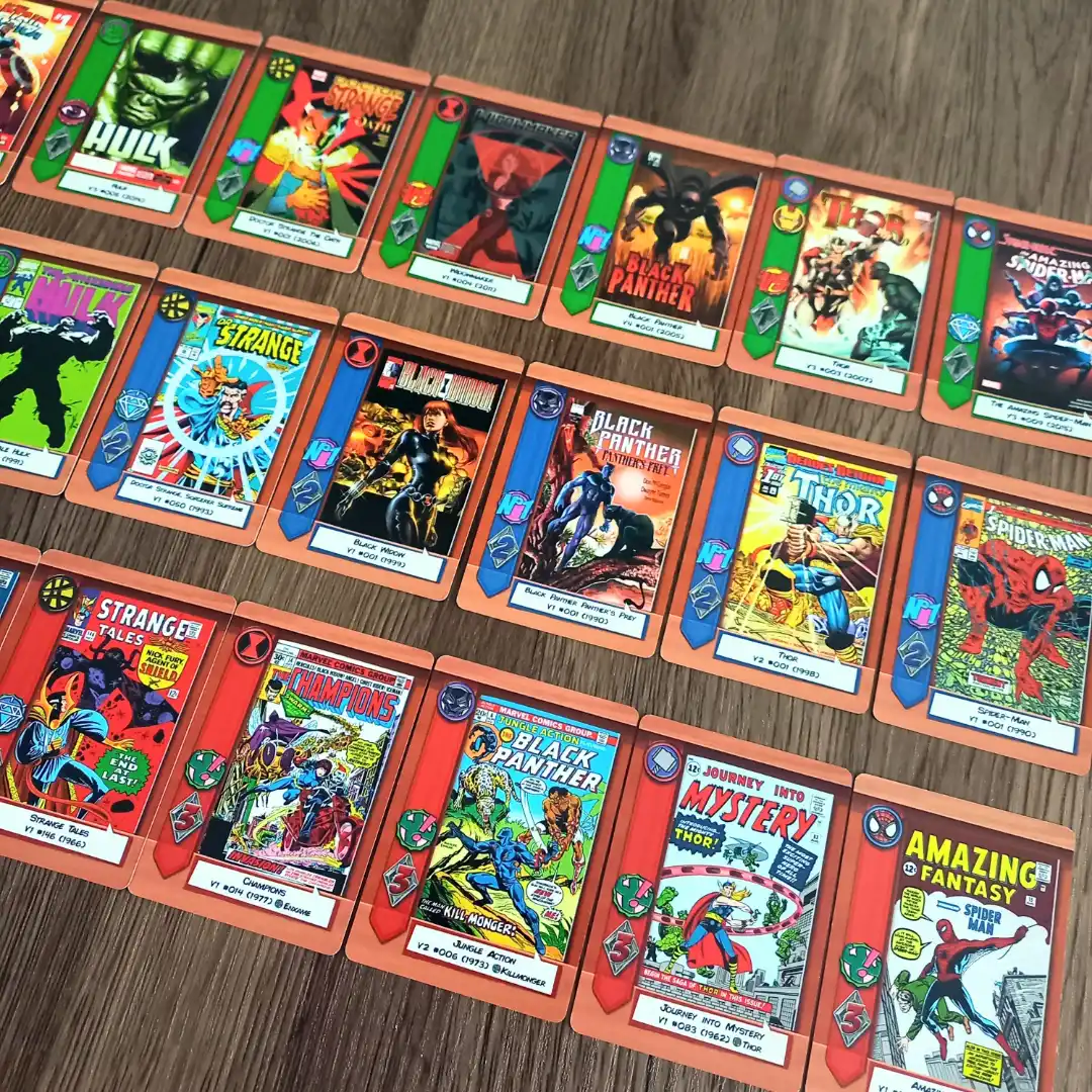 Comic Hunters é um jogo em que os jogadores disputam as HQs mais valiosas da Marvel, montando coleções por tamanho, variedade de heróis e Destaques. Após três rodadas, quem somar mais pontos vence.