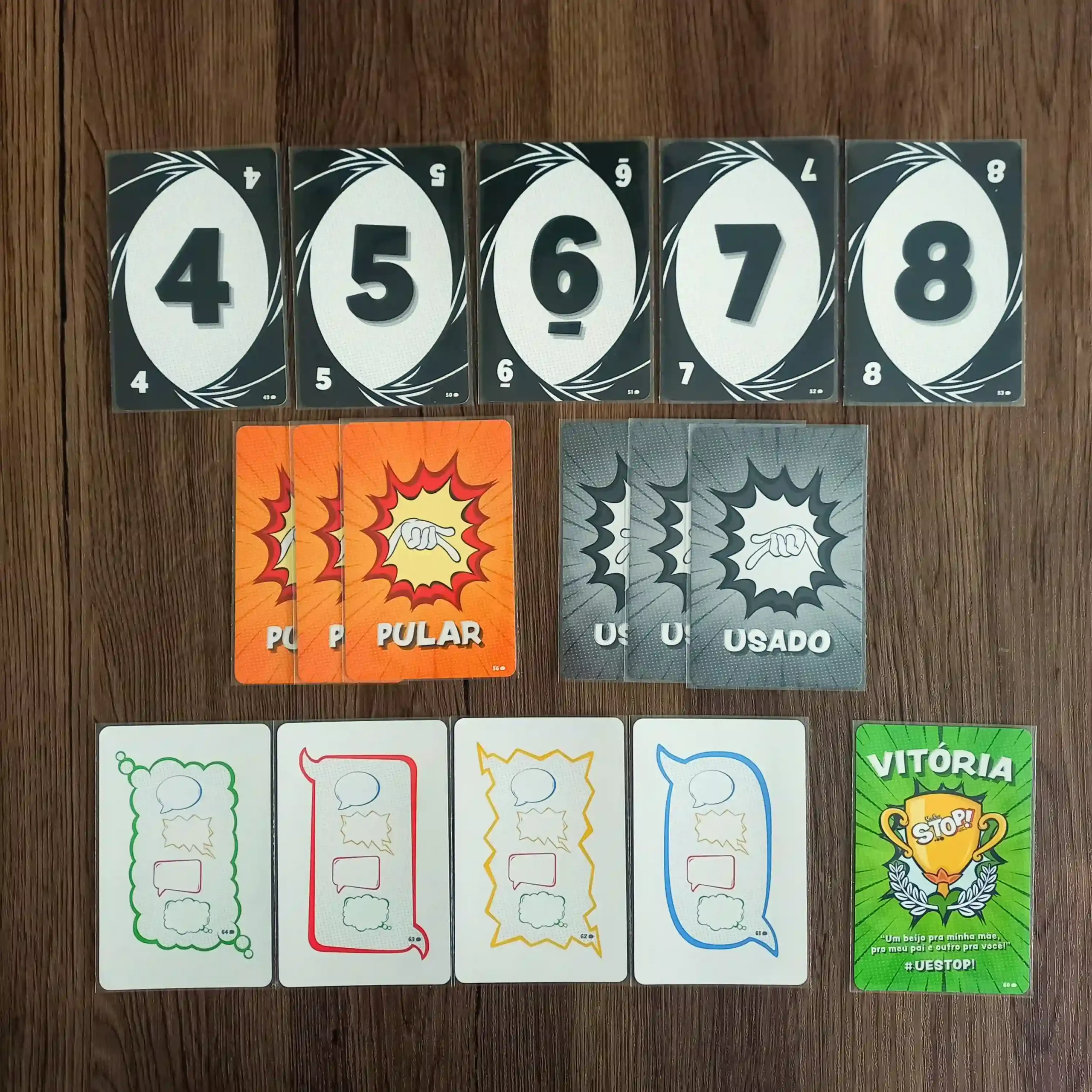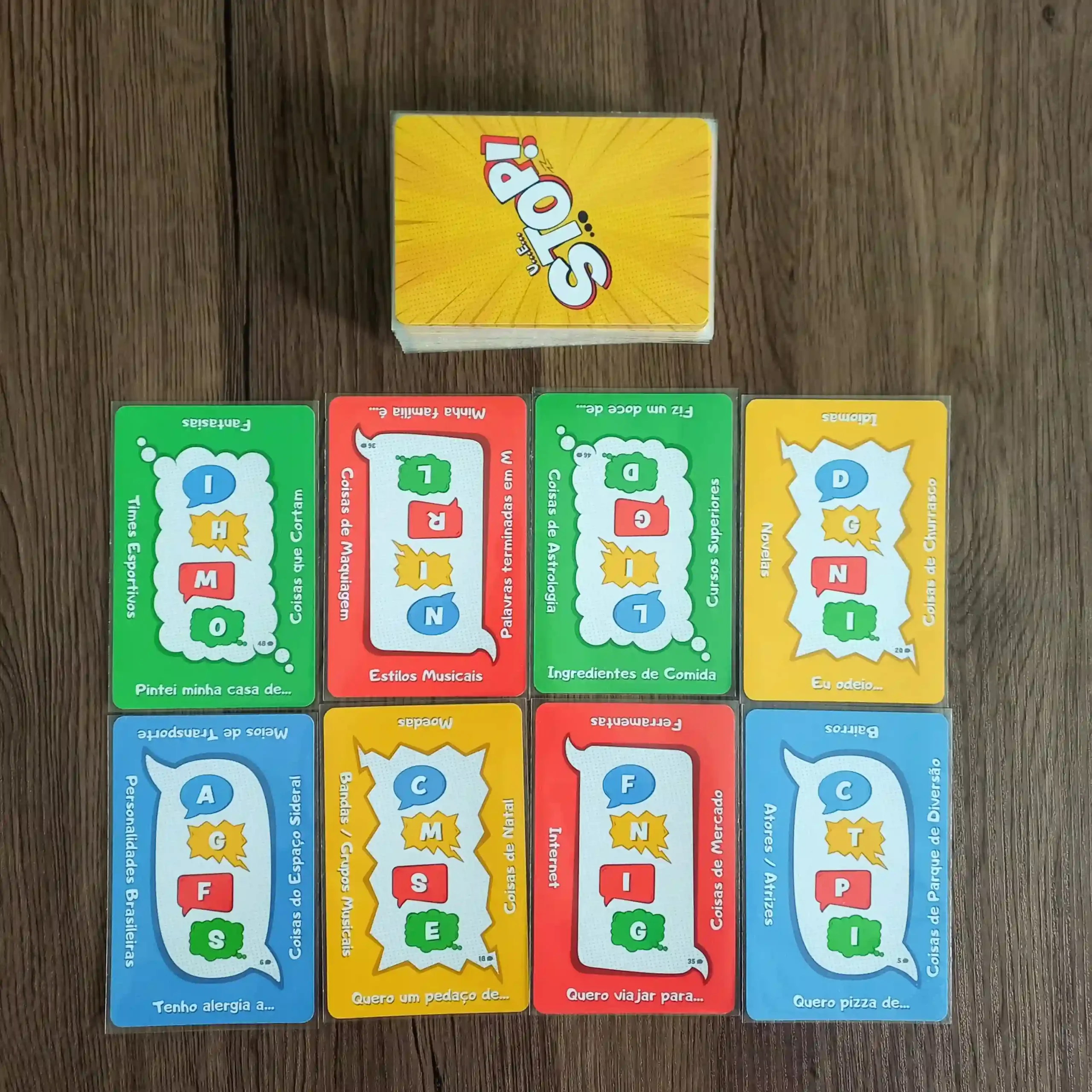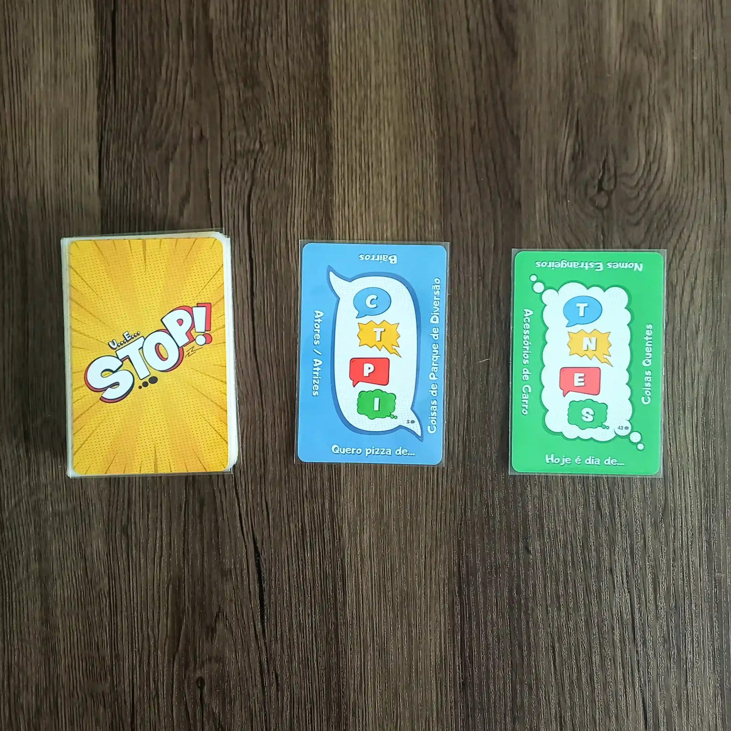 Um dos maiores clássicos brasileiros está de volta com uma nova roupagem. Com regras fáceis e quatro modos de jogo, você escolhe o desafio ideal. É perfeito para se divertir com os amigos ou com a família, usando apenas o raciocínio rápido. Como no original, UeStop! garante partidas rápidas, cheias de risadas e testes para os seus reflexos mentais.